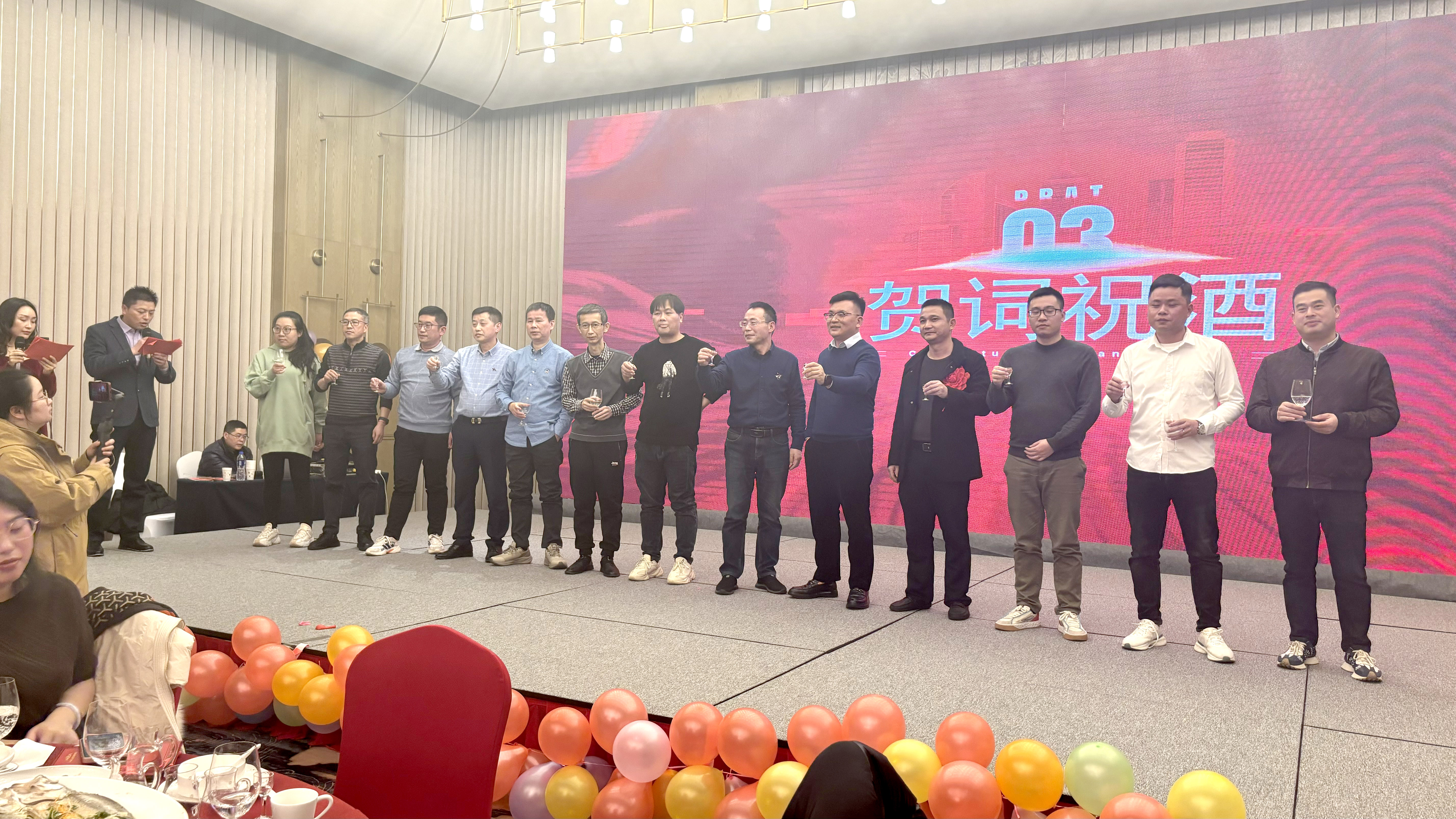 人生得意須盡歡,當歌對酒長精神。隨后進入高管祝酒環節。高管們興致高昂,聲徹大廳。職員們集體起立,喜形于色。酒過三巡,人已微醺。一杯一盞,盡皆情誼。