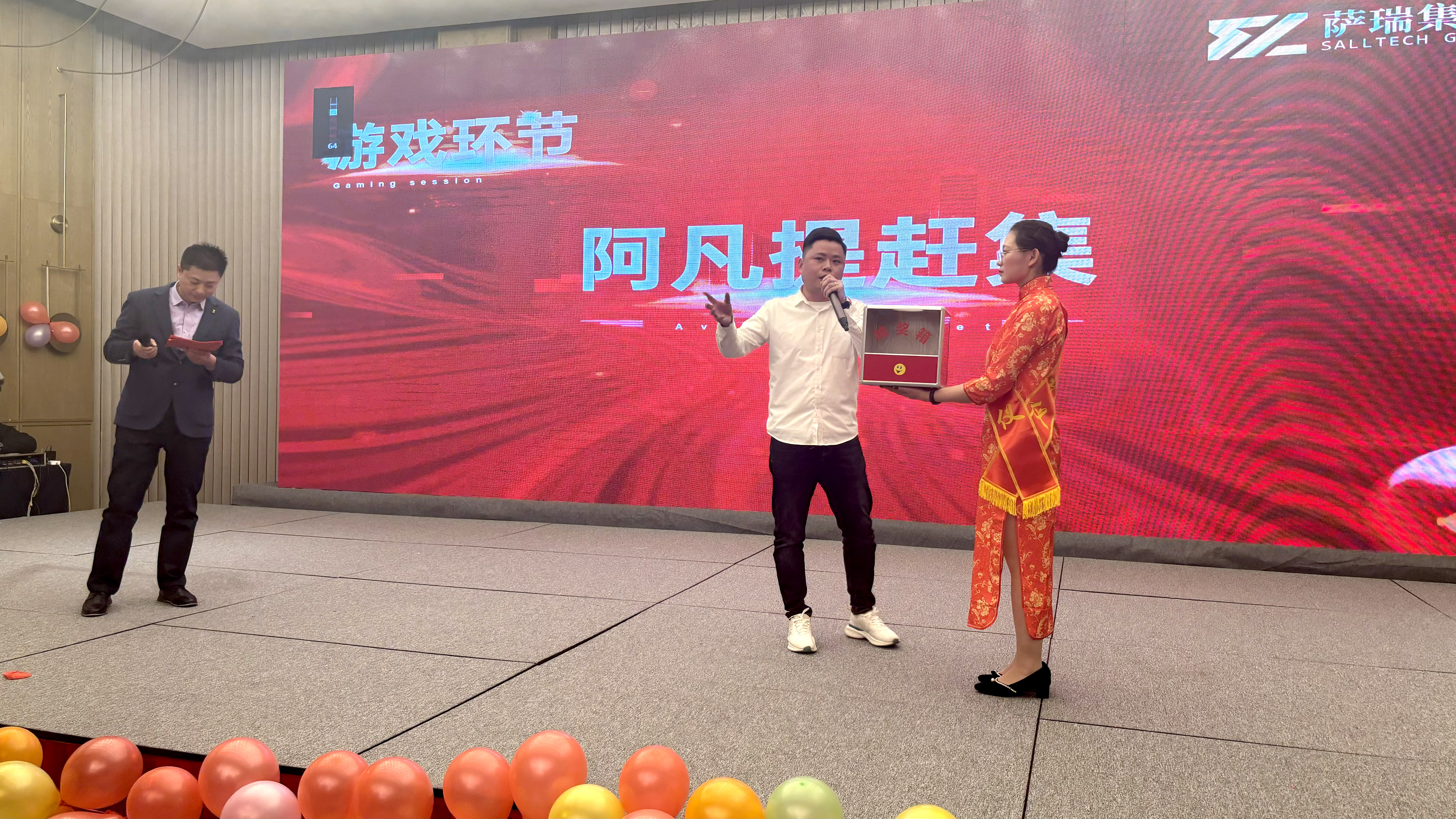 最后,員工文藝節目和多輪抽獎輪番開始。員工表演節目有歌曲《大花轎》、歌曲《稻香》、脫口秀、《樂天使之歌》朗誦、《明天會更好》等,抽獎包括總監贈禮、神秘抽獎、三等獎、二等獎、一等獎等多輪。婉轉動聽的歌喉,幽默風趣的內容,整齊劃一的節奏,充分展現了樂天使員工的生活情趣和精神修養。豐厚有品的大禮,群情激奮的尖叫,歆羨祝福的目光,充分達到了鼓勵和模范的效果。